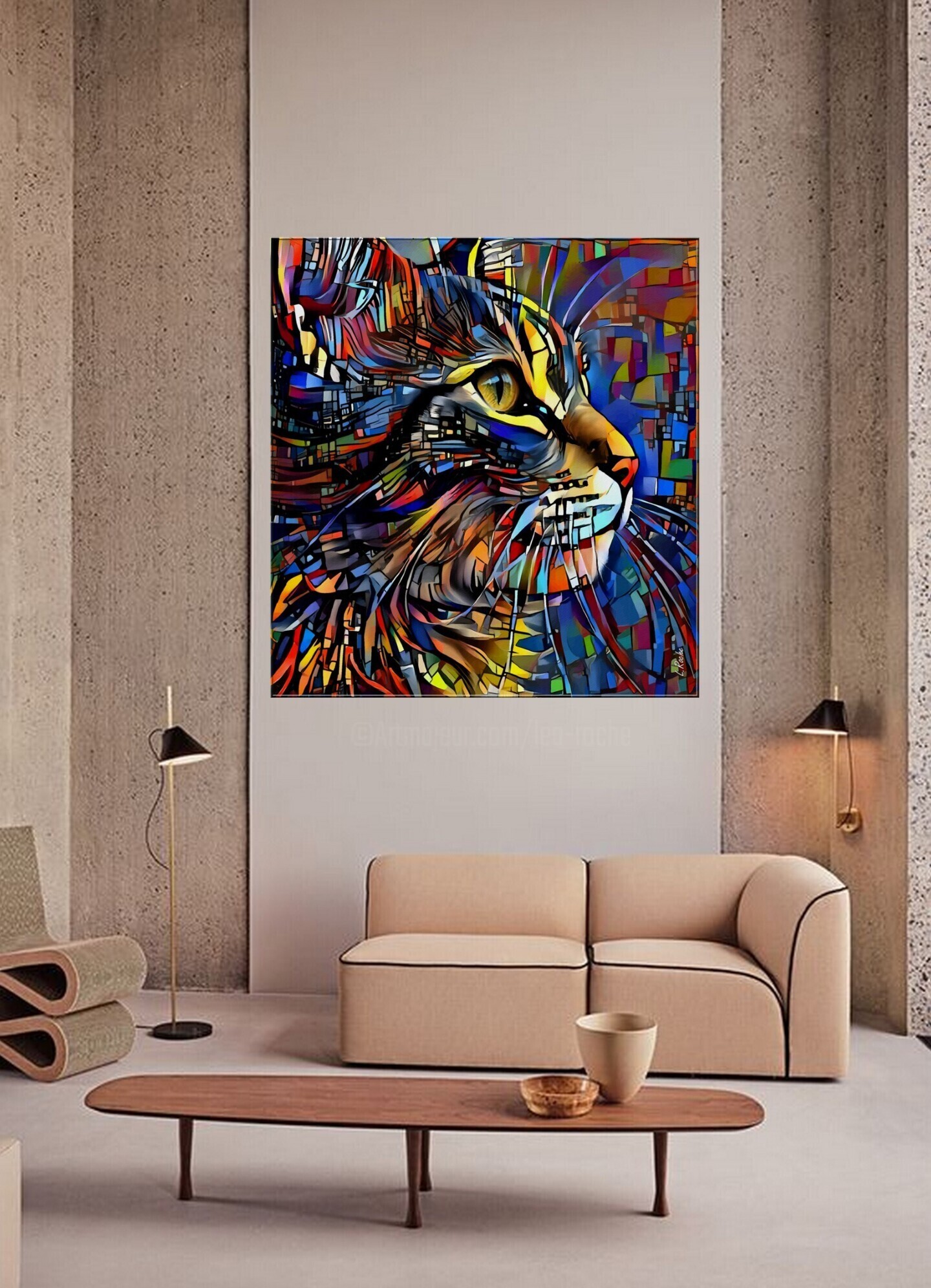 Original, unique piece - Fusion of artistic works (hand painting, Indian inks, acrylic painting + digital work, texture varnish ...no IA, no Photoshop, no filter, no montage, no collage..) creating unique, matte and glossy texture effects, on panel (light Medium/Aluminium ), for a joyful result, very contemporary. The back is white / black sides/ about 0,5 cm thickness.