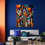 Original, unique piece - Fusion of artistic works (hand painting, Indian inks, acrylic painting + digital work, texture varnish ...no IA, no Photoshop, no filter, no montage, no collage..) creating unique, matte and glossy texture effects, on panel (light Medium/Aluminium ), for a joyful result, very contemporary. The back is white / black sides/ about 0,5 cm thickness.
